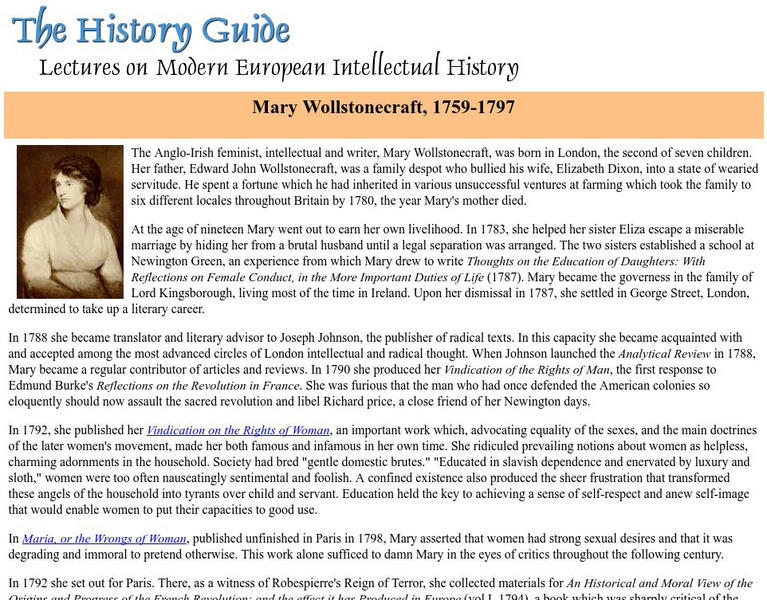 The History Guide: Mary Wollstonecraft, 1759 1797