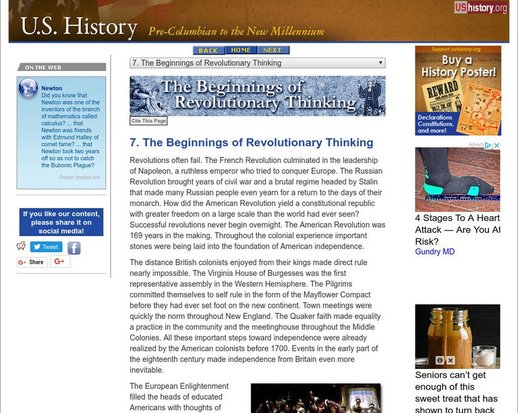 U.s. History: The Beginnings of Revolutionary Thinking