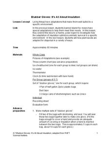 Instill the concept of adaptation with the help of Blubber Gloves—ziplock bags, shortening, and duct tape. Scholars discuss how animals and plants keep warm in polar regions, record their predictions, and try on their Blubber Gloves to...
