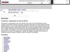 Students watch the video "Pocahontas: Ambassador to the New World," complete a vocabulary list and discuss the video using the provided questions.