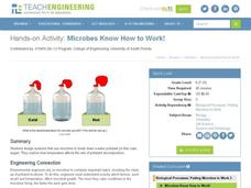 Scholars harness the power of microbes with an engaging activity that uses yeast to break down sugar in water. Multiple setups of the same experiment lets learners determine which temperature results in the fastest rate of...