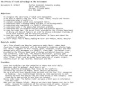 Students recognize the importance of solid waste management. In this science lesson plan, students analyze individual solid waste management habits as they enhance their knowledge of solid waste disposal and the recycling process.