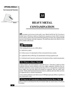 An informative lesson focuses on heavy metal contamination of environments. Classes read about, discuss, and answer questions pertaining to sources of heavy metals in the environment. To finish the 35th installment of 36, individuals...