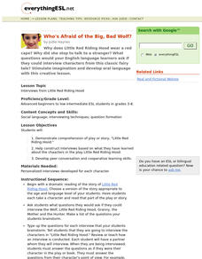Young scholars, at the advanced beginner to low intermediate ESL levels, demonstrate comprehension of the play or story, "Little Red Riding Hood." They construct interviews based on knowledge of the characters in the play Little Red...