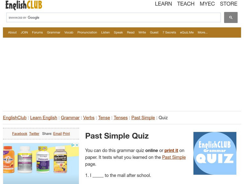 English Club: Learn English: Grammar: Verbs: Past Simple Quiz
