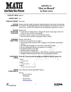Students create a ticket table illustrating the cost of tickets by alternative transportation. In this number sense lesson, students write number sentences to compare and contrast difference information in their chart. Students figure...
