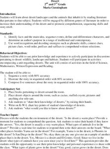 Students explore desert landscapes and the animals that inhabit the desert. They discuss deserts and the animals that live there. Students compose a story using the correct sequence and illustrate the story with items they would find in...
