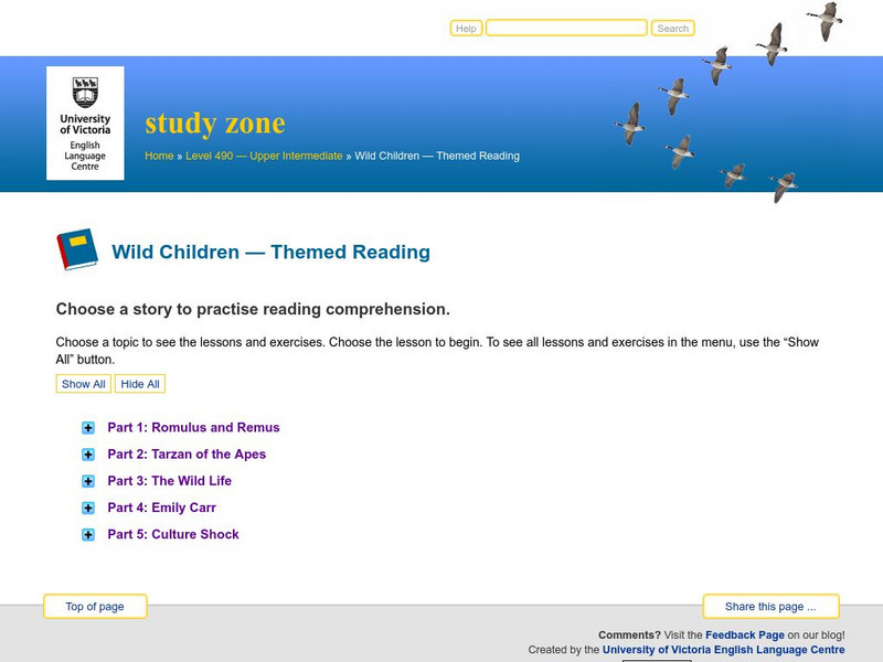 A set of varied timed exercises based short readings about Romulus and Remus, Tarzan, Native Americans, Canadian artist Emily Carr, and culture shock. The ESL level is advanced.