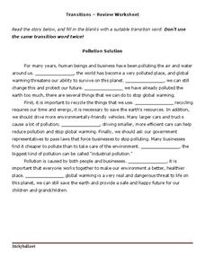 In this transitions review worksheet, students practice their grammar skills as they fill in the blanks in 3 paragraphs using the appropriate transitions.