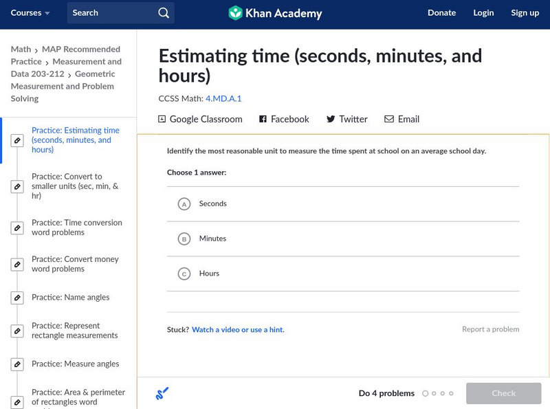 Khan Academy: Estimating Time (Seconds, Minutes, and Hours)