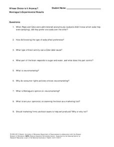 Your taste buds may be saying Pepsi, but your brain is saying Coke! By analyzing experimental research, learners discover ways in which our brains impact decision making. They conclude with a discussion of neuromarketing and how it...