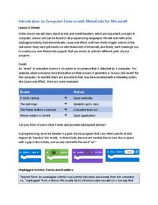 Make the lesson an event to remember. The first of nine installments in the Intro to CS with MakeCode series looks at events and event handlers in computer coding. Pupils learn about cause and effect from an offline lesson, then use...