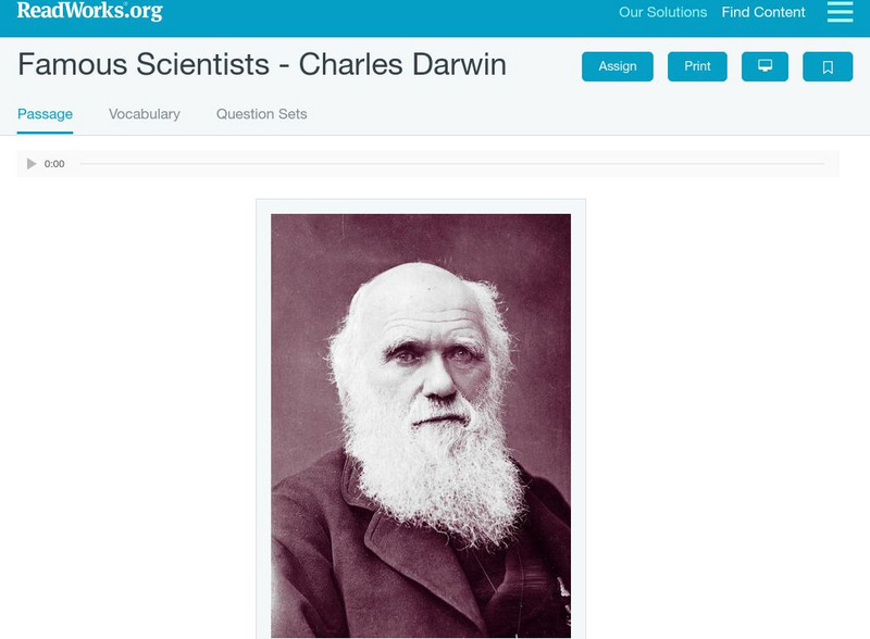 [Free Registration/Login Required] This passage discusses Charles Darwin and his theory of natural selection in evolution. This passage is a stand-alone curricular piece that reinforces essential reading skills and strategies and...