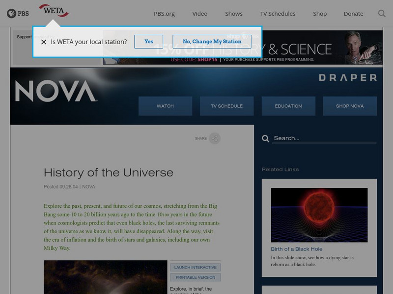 This interactive timeline provides information on the big bang as well as other major events of universe evolution. It also provides predictions about the universe's future.