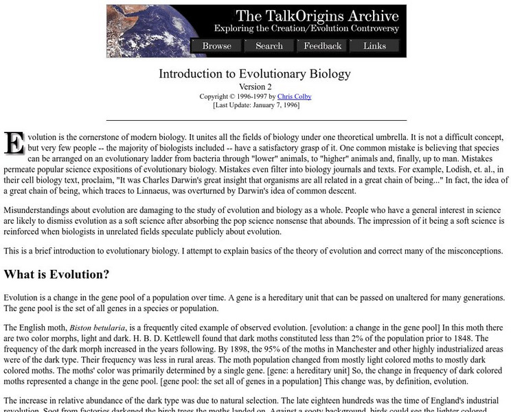 An article giving a brief introduction to evolutionary biology. The article addresses misconceptions as well as the basics of the theory of evolution.