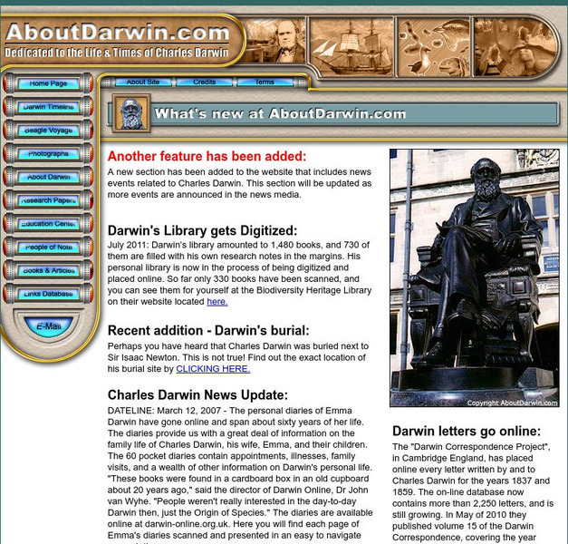 This comprehensive site gives you all you need to know about Darwin and more. A timeline, pictures, books Darwin wrote, and links are just a few of the topics you will find on this site.