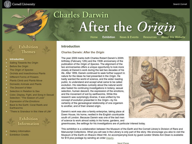 In honor of Darwin's 200th birthday and the 150th anniversary of the publication of "The Origin of the Species," Cornell has put together an extensive collection of Darwin's work during the last two decades of his life.