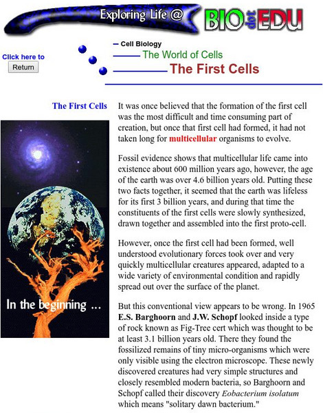 A brief essay about older and more recent ideas on when the first cells evolved. Good coverage of different scientific theories about the origin of life.