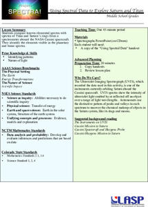 Titan is Saturn's largest moon and has its own atmosphere. An attention-grabbing tutorial allows learners to analyze the spectrum of Saturn and Titan to determine their elemental compositions. Scholars compare a known element's spectrum...