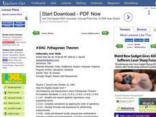 Pupils solve right triangles using the Pythagorean Theorem. In this solving right triangles using the Pythagorean Theorem lesson plan, students find the missing side of a right triangle. Pupils find the hypotenuse given two...