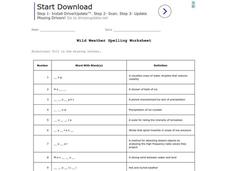 In this wild weather spelling worksheet, students read definitions related to weather, then fill in missing letters to form the matching word. A reference web site is given for additional activities.