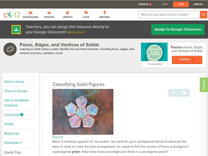 Ck 12: Geometry: Faces, Edges, and Vertices of Solids