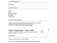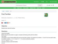 Fact families, and the relationship between addition and subtraction are the foucs of this lesson plan. Learners explore strategies to help with their addition and subtraction facts. They use doubles, related facts, and fact families to...