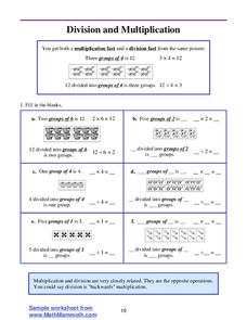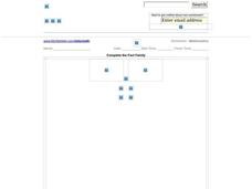 In this math worksheet, students discover multiplication and division fact families. Students analyze the sample, then solve 5 problems.