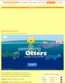 Otters swim through numerical gates carrying multiplication equations with a missing factor. By choosing the gate with the correct missing factor, players make the otter swim faster in the online game.