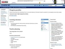 Students read about penguins and communicate their information in a one paragraph summary. In this penguin writing lesson, students review sentence construction. Students complete a KWL about penguins and read the book Penguins Through...