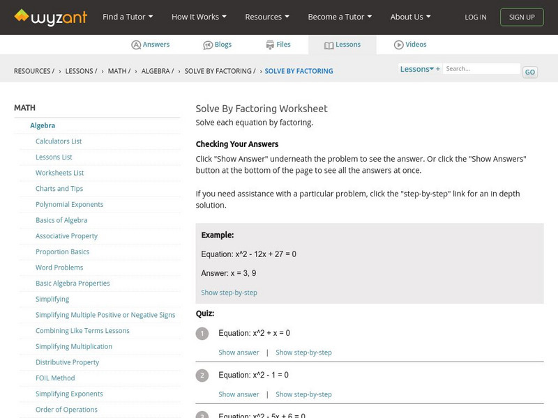Learners complete a worksheet on solving equations by factoring. An example problem and answer sheet is included.