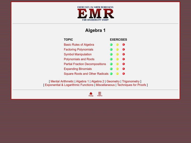 A more advanced review of algebra concepts and practice review problems ranging from the basic rules of algebra to polynomials. A good test of readiness for higher level math courses.