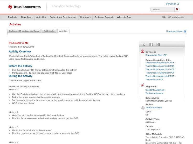 Students learn Euclid's Method of finding the Greatest Common Factor of large numbers. They also review finding GCF using prime factorization and listing.