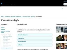 Perhaps a useful resource for an Art History course or a project on a famous figure, this standard 25 question multiple choice quiz asks factual questions about Vincent van Gogh's life such as siblings' names, the people who influenced...