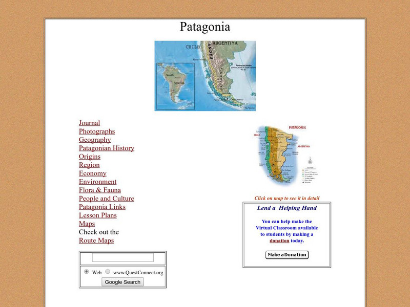 Thorough, informative site about the region of Patagonia. Besides factual information, this location also features a journal and photographs of the "World of Wonders" expedition.