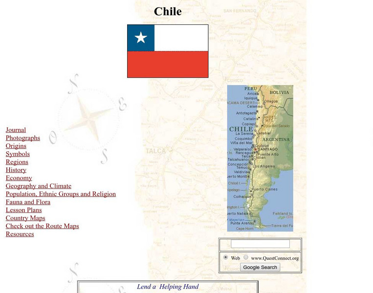 Thorough, informative site about the country of Chile. Besides factual information, this location also features a journal and photographs of the "World of Wonders" expedition.
