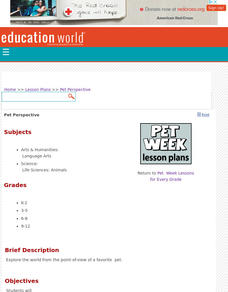 Discuss point of view through a familiar medium: your pet! Learners write a story from the perspective of their own or the class pet. Prompts such as "My Family" (or "My Class"), "My Day," and "A Day in the Life of a _________" help...