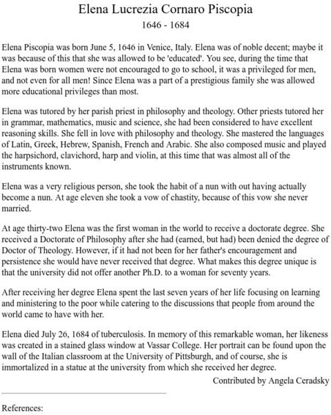 Wsu: Elena Lucrezia Cornaro Piscopia