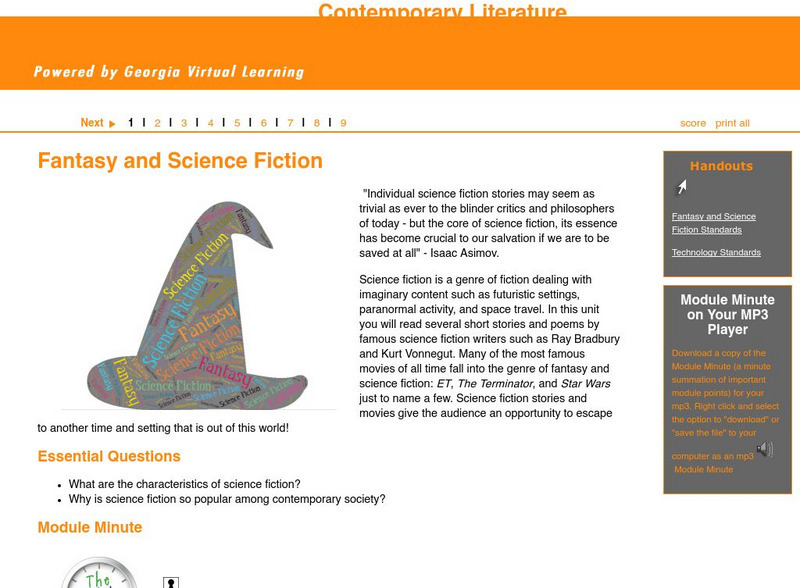 Ga Virtual Learning: Contemporary Literature: Fantasy and Science Fiction