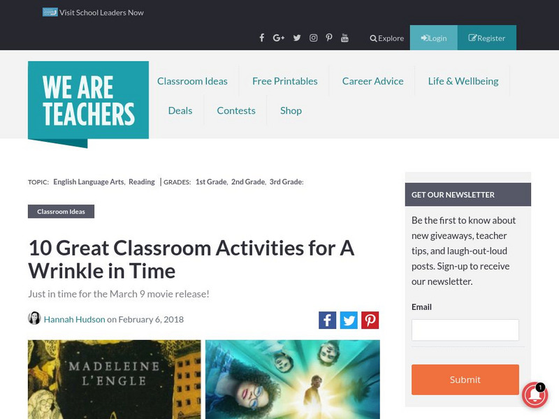 We Are Teachers: 10 Great Classroom Activities for a Wrinkle in Time