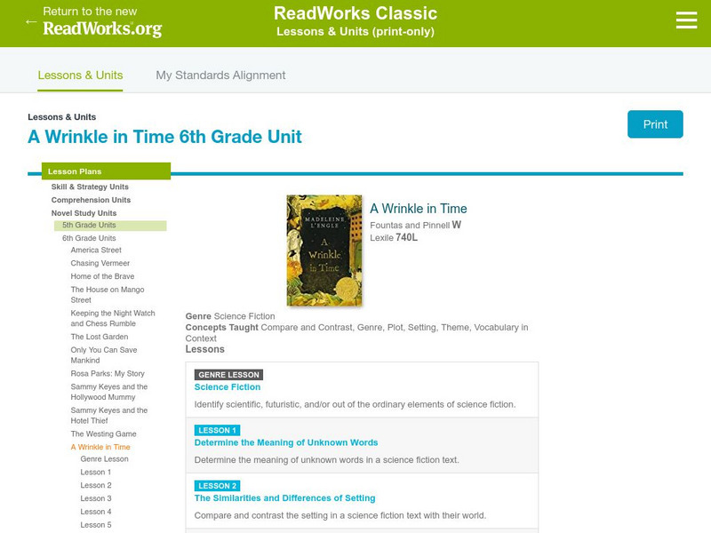Read Works: A Wrinkle in Time 6th Grade Unit