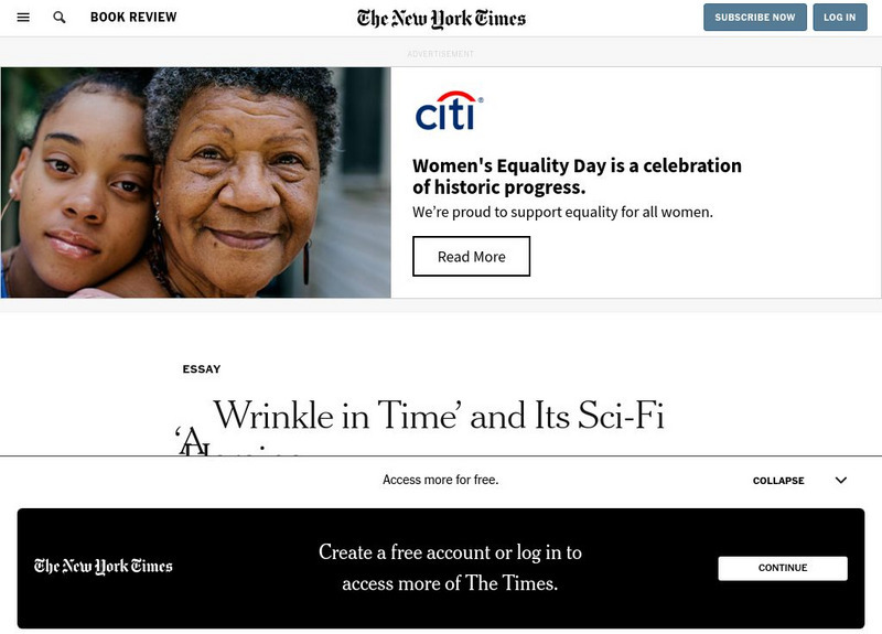 [Free Registration/Login Required] This article from The New York Times, a reprint from 2012, provides a book review for A Wrinkle in Time.