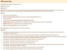 Seventh graders view a painting of the destruction of Mission San Saba in Texas. They discuss the painting and identify information that they can infer from the painting.