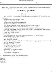For this elements of a short story worksheet, students are given definitions and must choose the element being defined. Students are also given a selection to read and answer questions about.