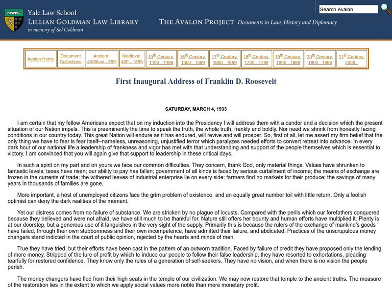 Yale Law School: First Inaugural Address of Franklin D. Roosevelt
