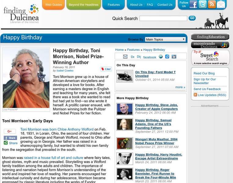 Finding Dulcinea: Nobel Women: Toni Morrison