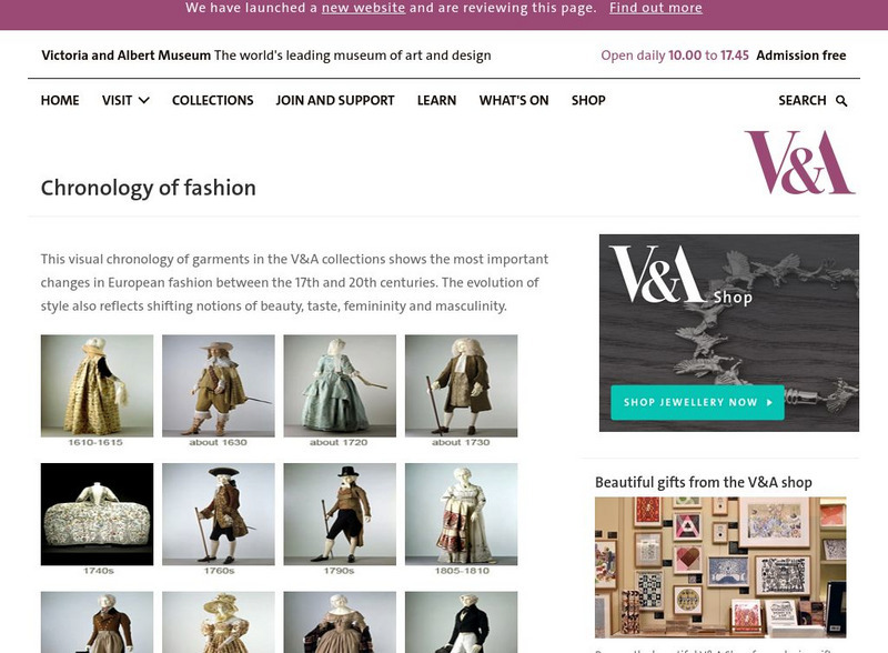 A chronology of the styles of clothing worn by men and women in Europe over three centuries (between the seventeenth and twentieth centuries). Serves to illustrate changing ideals regarding personal adornment, beauty, masculinity, and...
