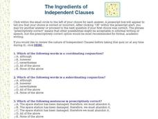 In this independent clause worksheet, students complete a total of 10 questions related to independent clauses. Students may get immediate on-line feedback.