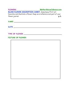 For this nature worksheet, students describe and illustrate a flower. Students include information about the flower type, its petals, stamens, pistils, and ovules. Students also describe how the flower is fertilized and reproduced.