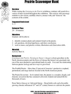 Students, in groups, visit an exhibit and for a prairie scavenger hunt to locate sunflowers and name products made from them. After sketching a prairie dog, they find nature cues farmers use when growing plants and raising animals. The...